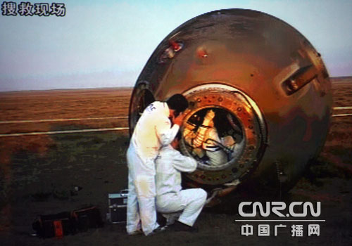 組圖:神七成功著陸 艙門打開