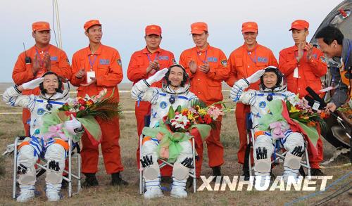 9月28日,神七返回艙艙門打開。航天員出艙。新華社發(fā)(電視截圖)