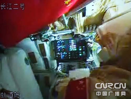 中廣網(wǎng)北京航天飛行控制中心9月26日快訊(記者曹囡囡 南光)軌道艙內(nèi),兩位航天員正在穿著艙外航天服。23:39,記者從指揮大廳顯示屏看到,航天員翟志剛、劉伯明剛剛穿著艙外航天服在軌道艙內(nèi)進(jìn)行按鍵操作。