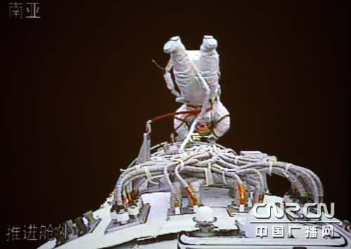 艙外航天員身上的安全掛鉤將航天員與神七飛船緊密相連。(中廣網(wǎng)記者南光 曹囡囡攝)