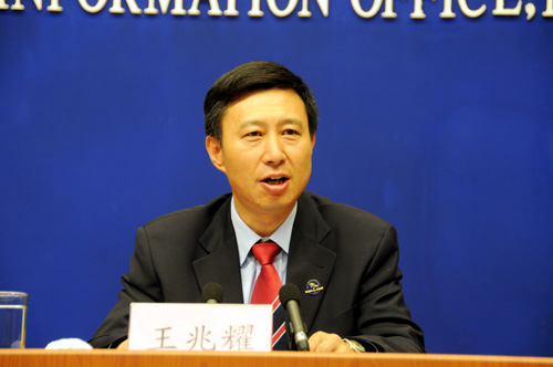 2008年9月27日(星期六)晚8時30分,國務(wù)院新聞辦公室舉行發(fā)布會。請中國載人航天工程辦公室副主任、載人航天工程新聞發(fā)言人王兆耀介紹神舟七號飛船運行、航天員出艙活動等情況,并答記者問。圖為中國載人航天工程辦公室副主任、載人航天工程新聞發(fā)言人王兆耀。新華網(wǎng) 王翰林 攝