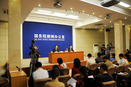 2008年9月27日(星期六)晚8時30分,國務(wù)院新聞辦公室舉行發(fā)布會。請中國載人航天工程辦公室副主任、載人航天工程新聞發(fā)言人王兆耀介紹神舟七號飛船運行、航天員出艙活動等情況,并答記者問。圖為發(fā)布會現(xiàn)場。新華網(wǎng) 王翰林 攝