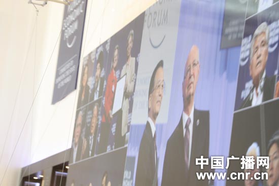 梅江會展中心的墻上醒目地掛著往屆達(dá)沃斯論壇回顧的巨幅照片。(中廣網(wǎng)記者朱虹 攝)