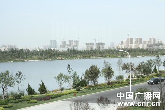 在梅江會展中心前面,景觀湖綠化工程修葺一新。(中廣網(wǎng)記者朱虹 攝)