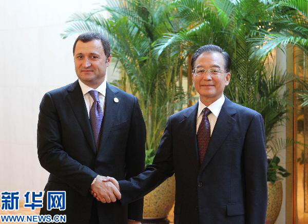 9月13日,國(guó)務(wù)院總理溫家寶在天津會(huì)見(jiàn)來(lái)華出席夏季達(dá)沃斯論壇的摩爾多瓦總理菲拉特。 新華社記者 丁林 攝