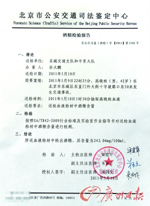 高曉松的酒精檢驗(yàn)報(bào)告。