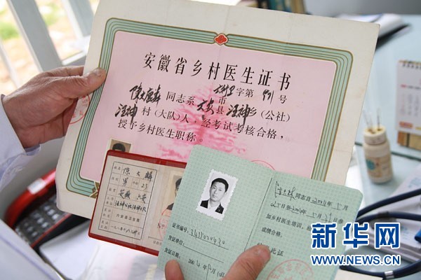 3月28日,安徽省六安市金安區(qū)中店鄉(xiāng)汪神村衛(wèi)生室室長陳大麟向記者展示他的多個(gè)行醫(yī)資格證。這些資格證見證了這名村醫(yī)走過的路。新華網(wǎng)記者 姜春媛攝