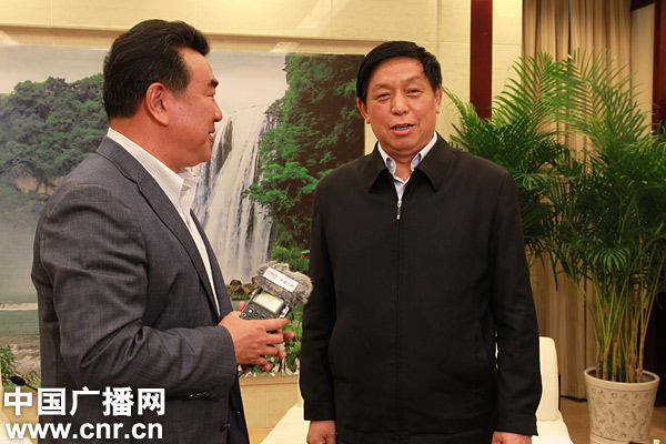 中央臺(tái)“走轉(zhuǎn)改”系列報(bào)道“傾聽貴州”采訪團(tuán)成員之一,中央人民廣播電臺(tái)臺(tái)長王求采訪貴州省委書記、省人大常委會(huì)主任栗戰(zhàn)書