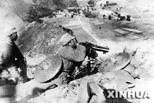 圖為平型關(guān)戰(zhàn)斗中第115師某部的機(jī)槍陣地。新華社發(fā)