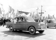 北京汽車制造廠生產的第一批北京牌和井岡山牌轎車,出現在1958年10月1日的國慶游行行列中