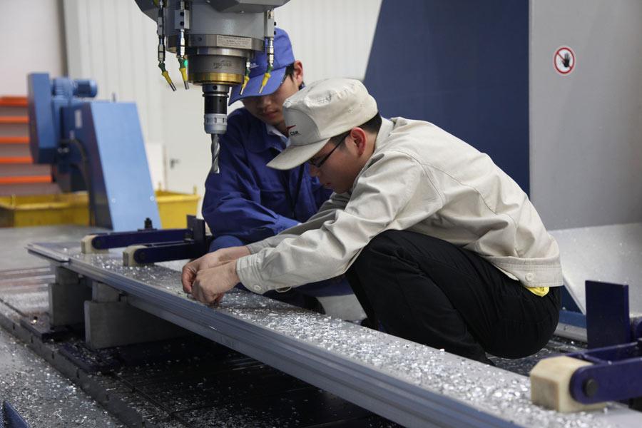 圖一:作為我國軌道交通裝備制造業(yè)的龍頭企業(yè),目前,中國南車構(gòu)建了鐵路機車車輛、動車組、城軌車輛自主研發(fā)、規(guī)模制造、規(guī)范服務的完整體系,同時積極發(fā)展儲能式輕軌、100%低地板有軌電車等戰(zhàn)略性新興產(chǎn)業(yè)。圖為南車株機公司工人正對鋁型材進行機械加工。