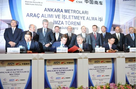 上圖:8月13日,中國南車株機(jī)公司獲簽25億元人民幣的土耳其安卡拉地鐵車輛項(xiàng)目合同。