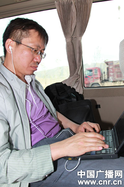 中央臺(tái)記者張孝成在《傾聽(tīng)新疆·走轉(zhuǎn)改》采訪(fǎng)路途中編輯音頻