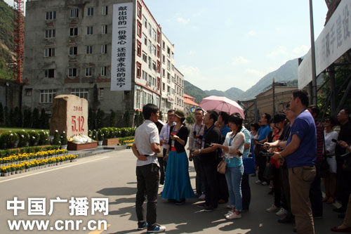 “全國百家電臺(tái)攜手走轉(zhuǎn)改:我們在基層”報(bào)道團(tuán)再訪北川災(zāi)區(qū)。中廣網(wǎng)記者李沛 攝