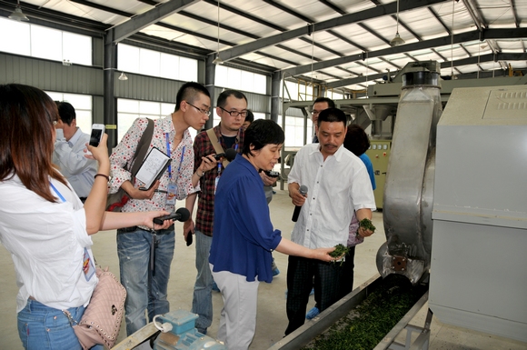 中央人民廣播電臺(tái)副臺(tái)長趙忠穎在香葉尖茶業(yè)廠房了解茶業(yè)生產(chǎn)過程