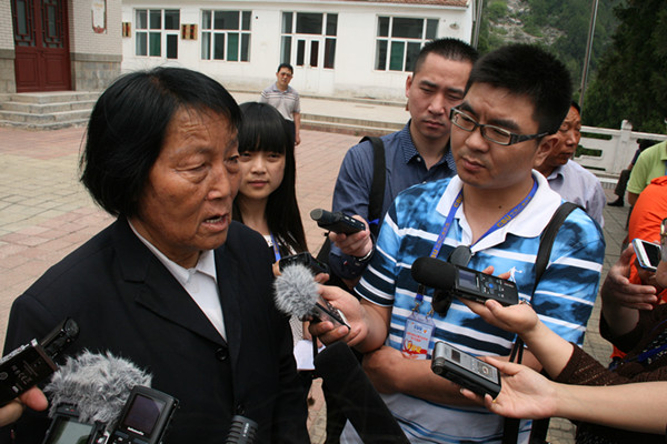 中央臺(tái)山西記者站記者李凡(右一)采訪全國勞模申紀(jì)蘭