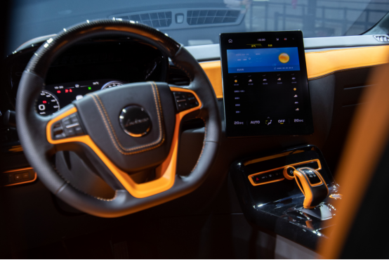 LEVC LX的內(nèi)飾采用黑色與愛馬仕橙的雙色拼接設(shè)計,彰顯優(yōu)雅奢華的品味,營造出高貴尊享的私人空間。LEVC LX擁有超大的個性定制客廂空間,長寬高尺寸達(dá)1740x1450x1435mm,并且與駕駛位之間設(shè)立可升降的隔離屏窗,營造完全獨立的私密空間。本次車展亮相的是四座行政版車型,據(jù)悉,LEVC LX后續(xù)還將推出三座旗艦版、七座豪華版,并且可以根據(jù)用戶個人喜好,對內(nèi)飾進(jìn)行超高自由度的定制化改裝。座椅材質(zhì)選用頂級手工皮質(zhì),并集加熱、通風(fēng)及按摩功能于一體。定制化星空穹頂配合超大的客廂空間營造出仿佛身在宇宙的夢幻乘坐感,行政酒廊則為用戶提供了更高階的奢華用車體驗。
