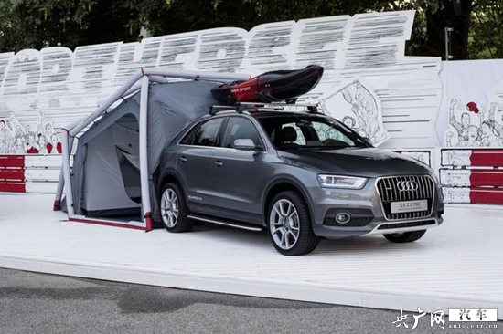 奧迪Q3 Camping Tent車型被設(shè)計(jì)成為一款終極戶外運(yùn)動車型,新車配備了奧迪原廠配件,包括鋁合金輪轂、可以放置皮艇的車頂行李架等等。