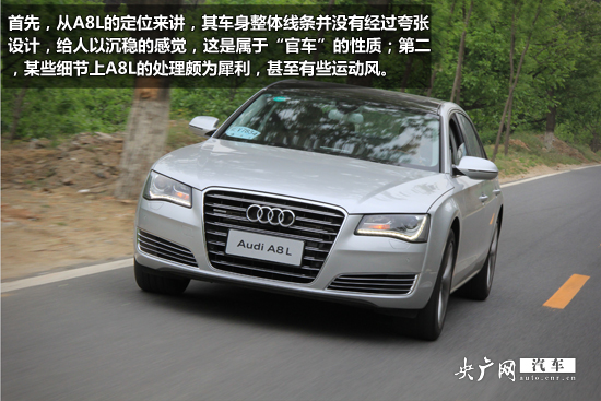 “并不很‘官車’”包含了兩層意思。首先,從A8L的定位來講,其車身整體線條并沒有經(jīng)過夸張的設(shè)計,給人以沉穩(wěn)的感覺,這是屬于“官車”的性質(zhì);第二,某些細節(jié)上,A8L的處理頗為犀利,甚至有些運動風(fēng),在這個越來越傾向于后續(xù)社會的時代,這種設(shè)計或許會俘獲更多年輕富豪的心。