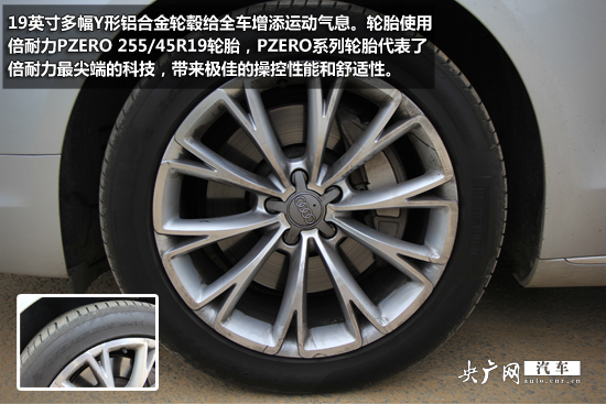 車身側(cè)面,腰線和裙線都采用了較為平直的設(shè)計,保證了形象的穩(wěn)重。19英寸多幅Y形鋁合金輪轂是給全車增添運動氣息的設(shè)計元素。輪胎使用倍耐力PZERO 255/45R19輪胎,PZERO系列輪胎代表了倍耐力最尖端的科技,高性能可為駕乘者帶來了極佳的操控性能和舒適性。