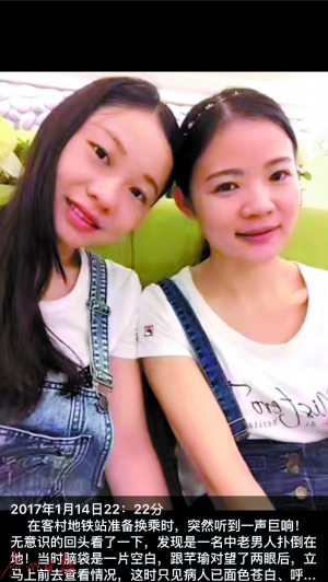 當(dāng)日22時(shí)20分,廣東省第二人民醫(yī)院急診科護(hù)士唐翌葵和心內(nèi)三科護(hù)士閔芊瑜正從3號(hào)線往8號(hào)線換乘。正當(dāng)她們要上扶梯時(shí),10多米開外一名中年男子突然倒下。唐翌葵、閔芊瑜和另外兩名市民趕緊過去幫忙,還有市民去呼叫地鐵工作人員。