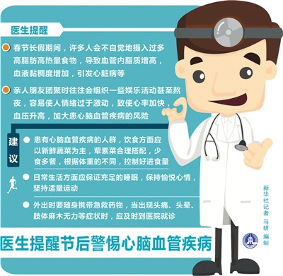 春節(jié)期間,在家宅著和外出聚會成為假期生活的主要內(nèi)容。作息不規(guī)律和娛樂過度容易導(dǎo)致睡眠不足、眼睛干澀不適、“麻將腿”、肩頸腰痛等疾病。外出游玩則有可能因公共場所的密切接觸而引起傳染病。節(jié)日期間飲食不節(jié)制、生活失去規(guī)律甚至容易導(dǎo)致胰腺炎、胃腸炎、心腦血管等疾病。