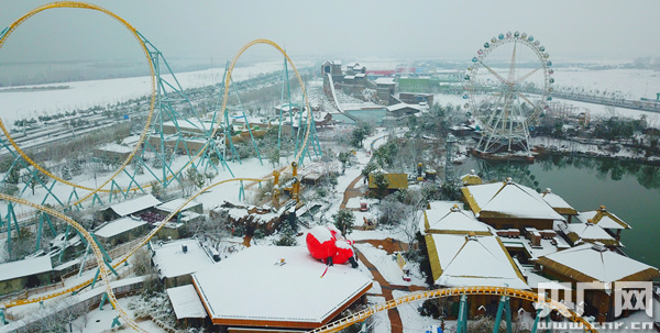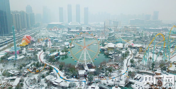 央廣網(wǎng)合肥1月7日消息 2018新年伊始,合肥迎來首場降雪。雪后,合肥全城銀裝素裹,位于城南的萬達(dá)樂園開啟雪靜美如畫模式。(陳登余 攝)