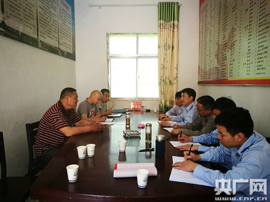 國稅局黨員干部與村里干部研究下一步如何扶貧、扶智