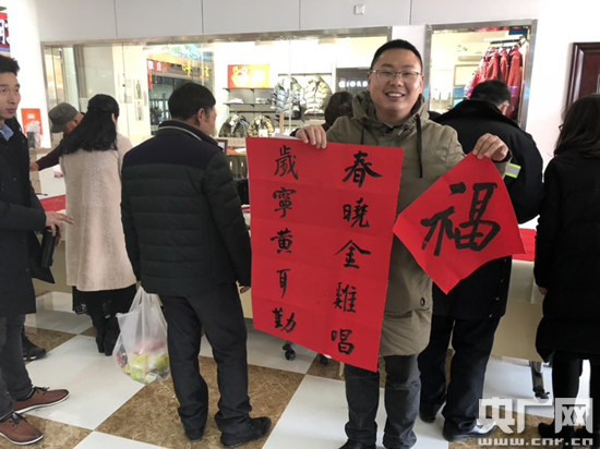 央廣網(wǎng)合肥2月9日消息(記者徐鵬 通訊員金海礁)“‘生意在人為,春風(fēng)迎客至’。這幅對(duì)聯(lián)送給你,祝你財(cái)源廣進(jìn)!”2月6日,在位于安徽北沿江高速上的清溪服務(wù)區(qū)內(nèi),來自褒禪山畫院的書法名家將一副散發(fā)著墨香的對(duì)聯(lián),送給了一位旅客。