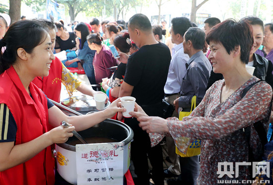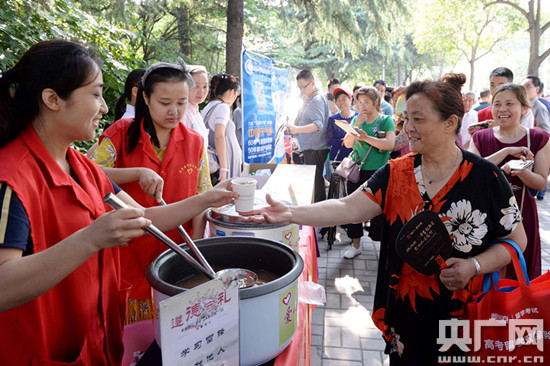 央廣網(wǎng)安徽頻道6月7日消息 6月7日,在合肥市十中高考考點(diǎn)校門外,和平路街道的青年志愿者為考生家長(zhǎng)免費(fèi)發(fā)放“愛(ài)心綠豆湯”。當(dāng)日,2017年高考拉開帷幕,合肥市瑤海區(qū)和平路街道在轄區(qū)內(nèi)的高考考點(diǎn)設(shè)立愛(ài)心驛站,組織青年志愿者為考生及家長(zhǎng)準(zhǔn)備免費(fèi)的綠豆湯和防暑藥品。據(jù)悉,該項(xiàng)公益活動(dòng)已持續(xù)12年。(解琛 王毅然)