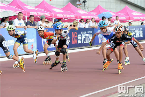 央廣網(wǎng)合肥7月31日消息 7月30日,選手正在第32屆全國(guó)速度輪滑(場(chǎng)地)錦標(biāo)賽青年男子組10000米積分淘汰賽中。(徐小玲 張大崗攝)