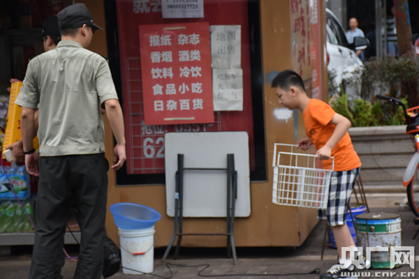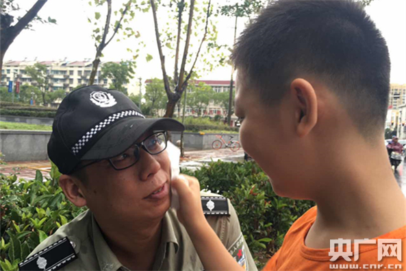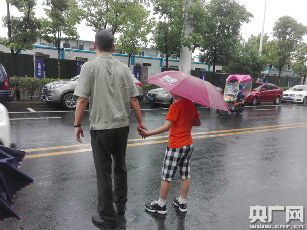 央廣網(wǎng)合肥8月9日消息 “爸爸,為什么書(shū)報(bào)亭不能賣(mài)吃的?”“爸爸,為什么他們都把車(chē)停人行道上?”8月8日上午,雖然下起了大雨,但是蜀山區(qū)城管局執(zhí)法大隊(duì)二中隊(duì)副中隊(duì)長(zhǎng)蔣建帶著9歲的兒子蔣博軒開(kāi)始了一天的工作。父子倆一問(wèn)一答,現(xiàn)實(shí)版“爸爸說(shuō)”在我們身邊展現(xiàn)。(宗雷 王翔翔)
