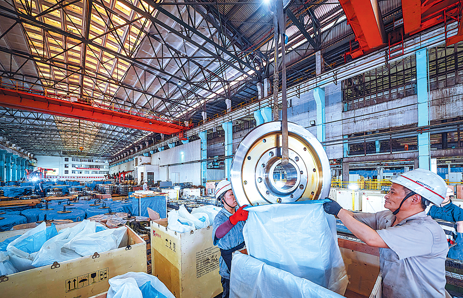 6月4日下午,馬鋼輪軸事業(yè)部職工在對出口法國阿爾斯通公司的36件AT840G高鐵車輪進(jìn)行包裝發(fā)運。馬鋼加強與“一帶一路”沿線國家和地區(qū)合作,今年1月至5月,已與世界70多個國家和地區(qū)發(fā)展了雙邊貿(mào)易。通訊員 張明偉 攝