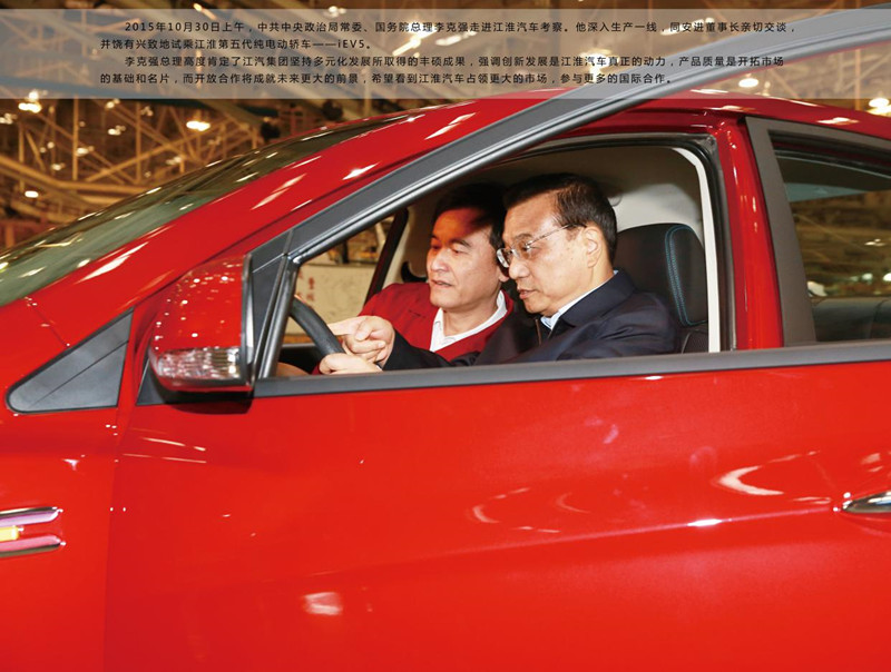2015年10月30日,陪同德國(guó)總理默克爾在合肥訪問(wèn)的國(guó)務(wù)院總理李克強(qiáng),走進(jìn)江淮汽車集團(tuán)考察。李克強(qiáng)強(qiáng)調(diào),希望看到江淮汽車占領(lǐng)更大的市場(chǎng),參與更多的國(guó)際合作。