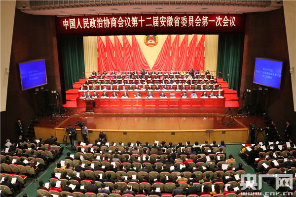 2018年1月21日上午9時(shí)整,中國(guó)人民政治協(xié)商會(huì)議第十二屆安徽省委員會(huì)第一次會(huì)議開(kāi)幕。大會(huì)聽(tīng)取十一屆省政協(xié)常務(wù)委員會(huì)工作報(bào)告。