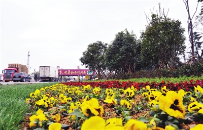 提升改造不僅對出口道路進行拓寬,更是高標準建設道路交口的園林景觀。記者在肥東高速道口看到,在滿足交通視線的前提下,多采用較大規(guī)格、樹姿優(yōu)美、長勢旺盛的苗木,配植花灌木、草本花卉、觀賞草,通過植物樹形、高度、花期、色彩的搭配,營造出特色鮮明、視覺效果強烈的植物景觀。