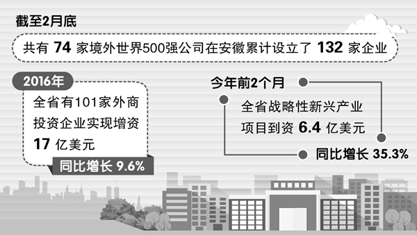 近年來(lái),我省把吸引世界500強(qiáng)企業(yè)或知名跨國(guó)公司和行業(yè)龍頭企業(yè),作為利用外資的重中之重,積極優(yōu)化投資環(huán)境,催生新一輪對(duì)外開放高起點(diǎn)加快推進(jìn)。今年以來(lái),世界500強(qiáng)企業(yè)美國(guó)PPG工業(yè)(龐貝)、香港華潤(rùn)集團(tuán)在皖先后新設(shè)了多個(gè)項(xiàng)目,我省引進(jìn)境外世界500強(qiáng)企業(yè)實(shí)現(xiàn)了新突破。最新數(shù)據(jù)顯示,截至2月底,共有74家境外世界500強(qiáng)公司在安徽累計(jì)設(shè)立了132家企業(yè)。