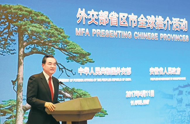 外交部部長(zhǎng)王毅致辭(圖片源自安徽日?qǐng)?bào))
