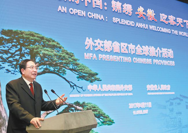 央廣網(wǎng)北京4月12日消息(記者王曉蕾 高藝寧)昨日下午,以“開(kāi)放的中國(guó):錦繡安徽,迎客天下”為主題的外交部省區(qū)市全球推介活動(dòng)在外交部藍(lán)廳舉行!皦衙馈、“厚重”、“創(chuàng)新”被發(fā)言嘉賓多次提起,成為此次安徽推介會(huì)熱詞。