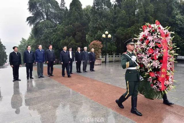 4月24日,習近平總書記到安徽考察,前往金寨縣向革命烈士紀念塔敬獻花籃。上午11時30分許,習近平的身影出現(xiàn)在安徽省六安市金寨縣紅軍廣場。霏霏細雨中,習近平向烈士紀念塔敬獻花籃。隨后,瞻仰了紅軍紀念堂,參觀了金寨縣革命博物館。