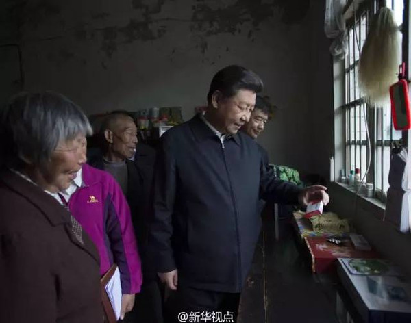 走進村民陳澤平家兩間簡陋的房子,習近平總書記仔細察看,詢問家里的情況。身體還好嗎?這個季節(jié)屋里還有點冷吧?家里種幾畝地?種的茶葉幾年能收獲?養(yǎng)了幾頭豬?豬肉價格還可以吧?總書記問得十分細致?吹酱策叾阎鴰装竟,總書記說,這里又住人又是倉庫啊,并問陳澤平,存的糧食夠吃多長時間?倳涍指著屋頂說:“這里拉的電線可有點亂啊。”村干部遞上《建檔立卡貧困戶基本情況調(diào)查表》!耙泼裰毖a”“公益林補貼”“計生獎”“勞務(wù)收入”……總書記一邊念著表格上的項目,一邊向陳澤平了解貧困戶搬遷等支出和補貼情況,問他愿不愿意搬遷到山下去。陳澤平回答說:“黨的這個政策好,我歡迎!