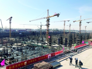 探訪當(dāng)日,北京晨報(bào)記者走過一條長長的甬道來到臨邊防護(hù)圍欄前,60萬平方米的超大體量施工現(xiàn)場著實(shí)令人震撼。13臺(tái)塔吊在施工現(xiàn)場不同部位不停揮動(dòng)著長臂,完成著一次次超大跨度的運(yùn)輸?shù)跹b。綠色的運(yùn)輸卡車正在川流不息地進(jìn)行著土方回填,一片井井有條的繁忙景象。據(jù)現(xiàn)場工作人員介紹,目前,地下結(jié)構(gòu)施工已臨近尾聲,預(yù)計(jì)5月底前全部完成。