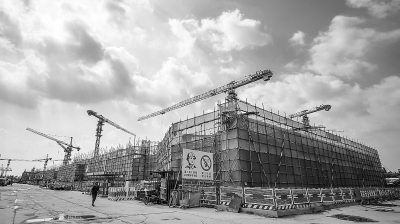 將來貨車能直接開進交易區(qū),因此建筑設(shè)計強度極高,施工難度也很大。眼下,為了保質(zhì)量、趕工期,有約5000位建筑工人三班倒,晝夜施工。今年10月底,流通中心的主體結(jié)構(gòu)將完成封頂,明年8月正式竣工,明年年底投入使用。