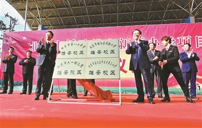 昨天上午,北京市援助雄安新區(qū)辦學(xué)項(xiàng)目啟動(dòng)儀式在雄安新區(qū)容城小學(xué)舉行,北京市朝陽(yáng)區(qū)實(shí)驗(yàn)小學(xué)雄安校區(qū)、北京市第八十中學(xué)雄安校區(qū)、北京市六一幼兒院雄安院區(qū)、北京市海淀區(qū)中關(guān)村第三小學(xué)雄安校區(qū)等四所學(xué)校正式掛牌成立。此舉標(biāo)志著北京市教育援助雄安首個(gè)項(xiàng)目啟動(dòng)實(shí)施。