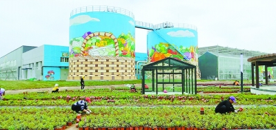 百蔬園外還有一處亮眼的景觀,兩個(gè)以蔬菜籃為設(shè)計(jì)元素的巨型彩繪能源罐高聳矗立。這兩個(gè)為溫室大棚提供能源的能源罐,經(jīng)過(guò)中央美院專家團(tuán)隊(duì)的藝術(shù)設(shè)計(jì)和現(xiàn)場(chǎng)手繪后,呈現(xiàn)出藍(lán)天白云下蔬菜籃子的幾何圖案,充分體現(xiàn)了百蔬園的藝術(shù)特性。