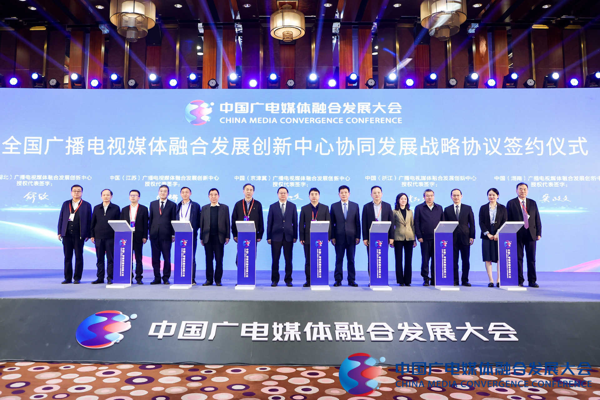 10月13日上午,第二屆中國廣電媒體融合發(fā)展大會(huì)的啟動(dòng)式暨高端峰會(huì)舉行。啟動(dòng)式上,京津冀、江蘇、浙江、湖北、湖南、陜西、蘇州等七家全國廣播電視媒體融合發(fā)展創(chuàng)新中心共同簽署《協(xié)同推進(jìn)媒體融合創(chuàng)新發(fā)展戰(zhàn)略合作協(xié)議》。