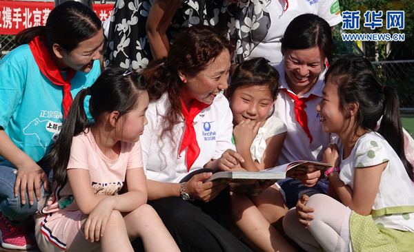 5月31日,愛(ài)心企業(yè)的員工為北京昌平燕京小天鵝公益學(xué)校的孩子講故事。