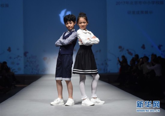12月3日,在北京服裝學(xué)院舉行的2017北京市中小學(xué)校服研發(fā)成果展示活動上,學(xué)生模特在展示校服。新華社記者羅曉光攝 -
