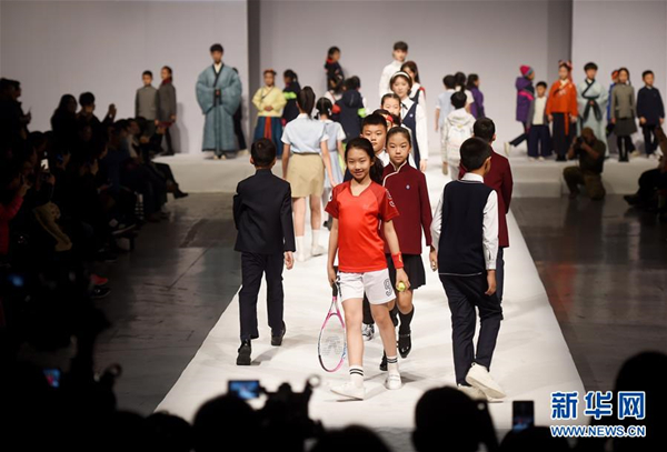 12月2日,學(xué)生在展示校服。 新華社記者 羅曉光 攝