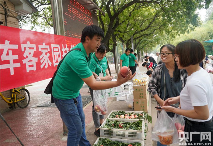 北京青龍橋街道林科院社區(qū),居民正在選購來自河北扶貧縣的農(nóng)產(chǎn)品。(央廣網(wǎng)記者 劉天思 攝)